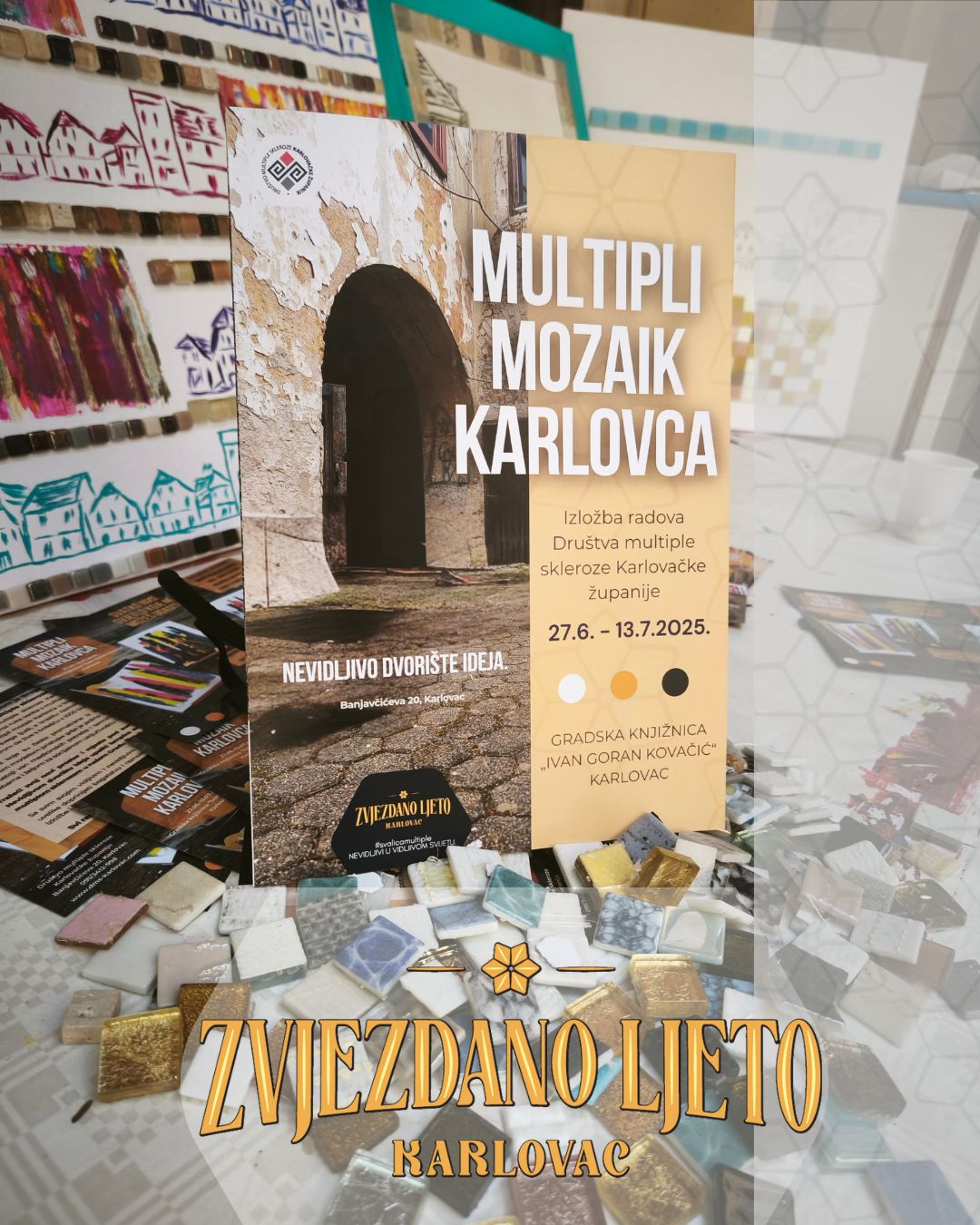 Pozivnica na otvorenje izložbe "Multipli mozaik Karlovca".